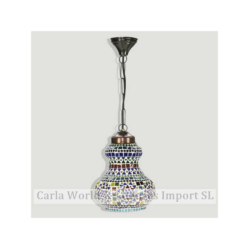 Lampara Techo de la India. Material de teselas de cristal de colores formando un mosaico. Color fondo BLANCO. 23cm. Precio, mínimo y envío 1 unidad