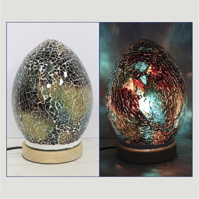 Lampara mosaico con base de madera. Huevo. Verde. 14x14x21cm