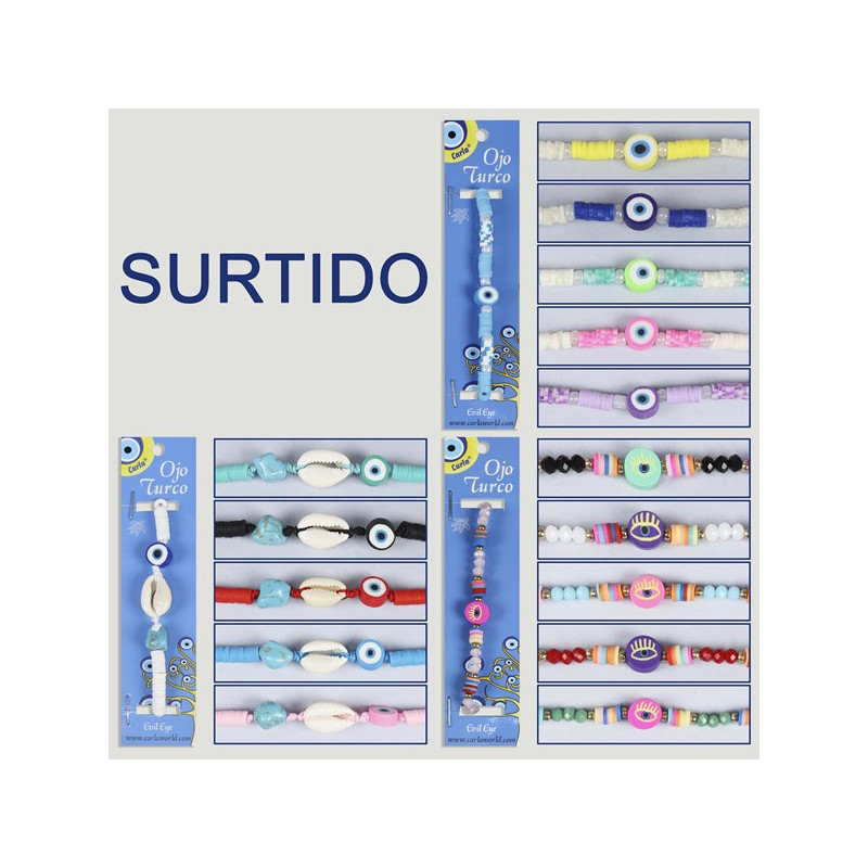 Pulsera ajustable. 16. Ojo Turco. Colores surtidos