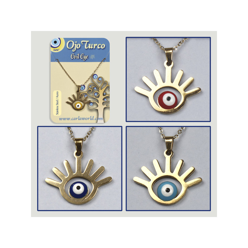 Colgante acero dorado. 17. Ojo Turco. Ojo. Surtidos