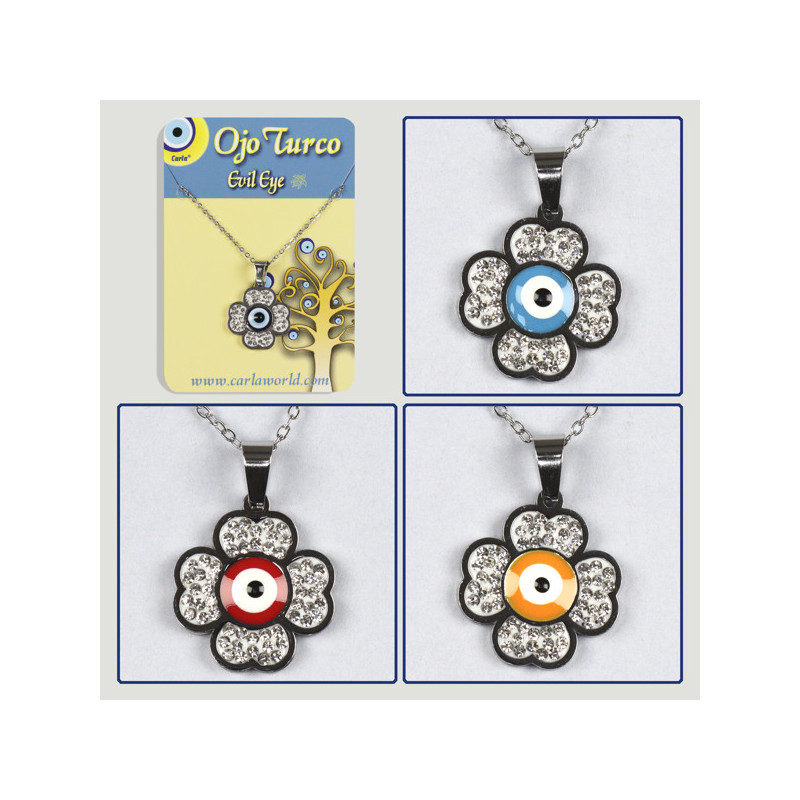 Gancho 22. Colgante acero plateado con circonitas. Ojo turco
