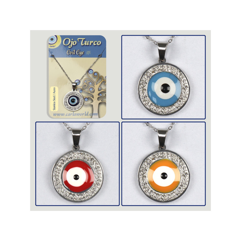Colgante acero circonitas. 24. Ojo Turco. Redonda. Surtidos