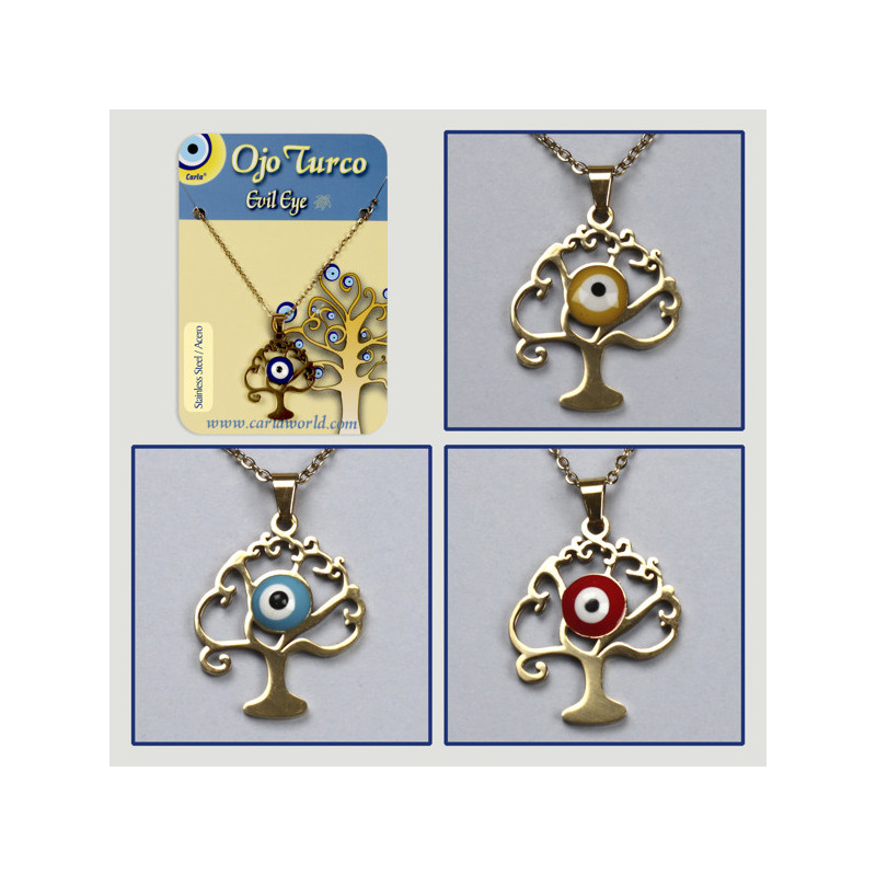 Colgante acero dorado. 25. Ojo Turco. Árbol. Surtidos