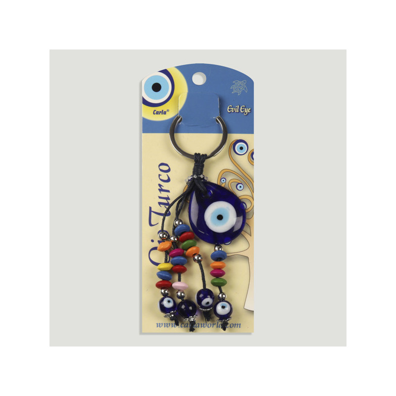 Llavero metal. 54. Ojo Turco. Lágrima + maderas