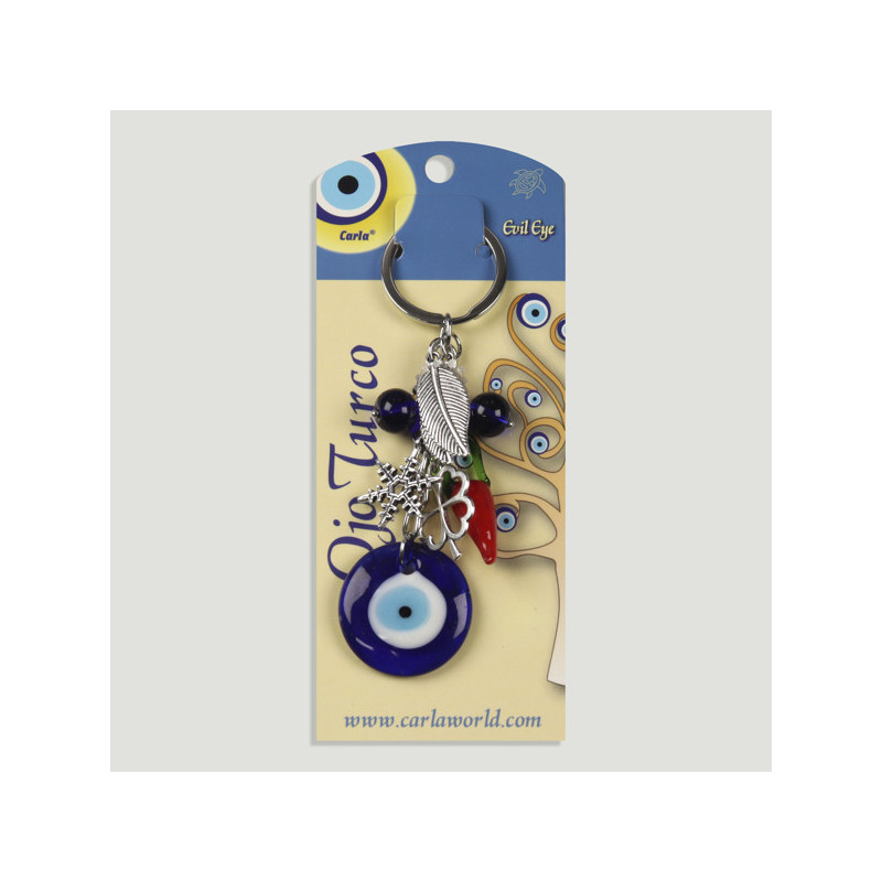 Llavero metal. 61. Ojo Turco. Redonda + amuletos