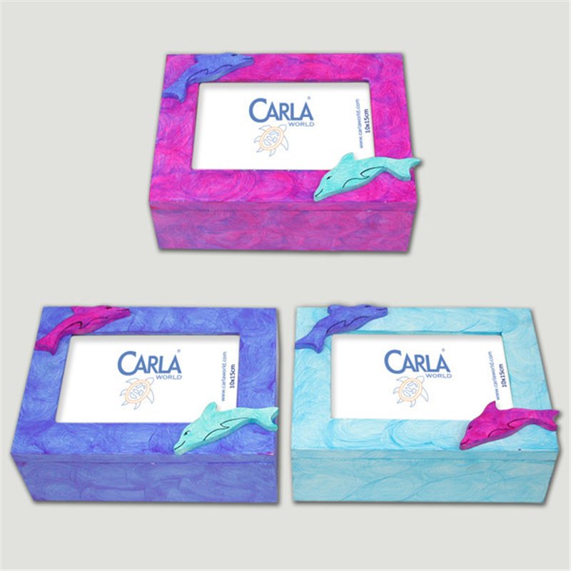 Caja madera Indonesa con foto. Delfines. 20x15x7cm
