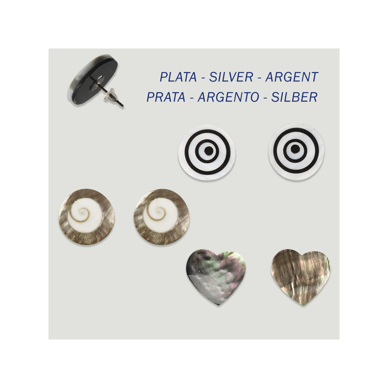 Pendientes Nácar con palo de PLATA y presión de silicona. Modelos surtidos.
