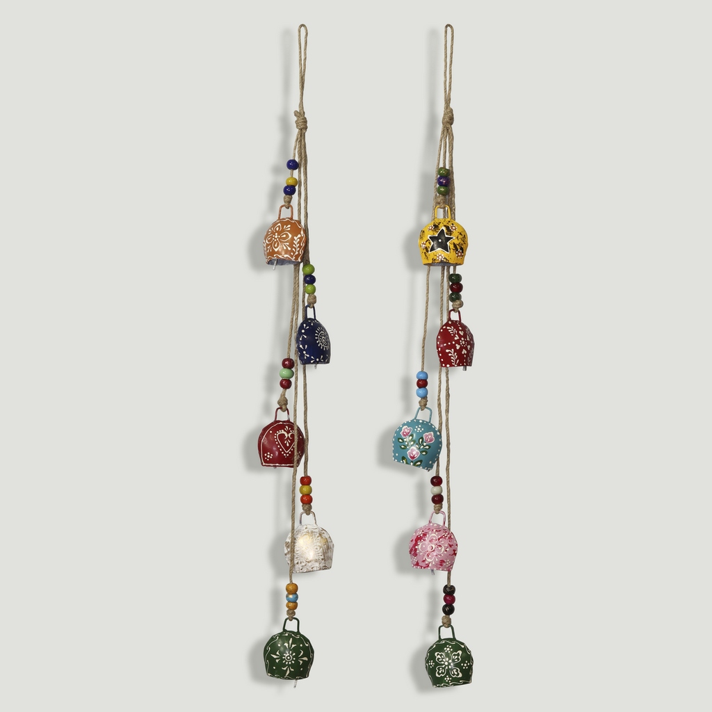 Móvil tira con 5 campanas metal 85cm. Colores surtidos