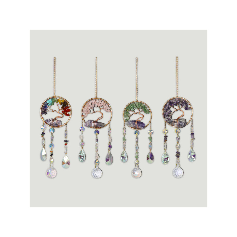 Móvil metal árbol chip/mineral en bruto con bola 9x35 cm.