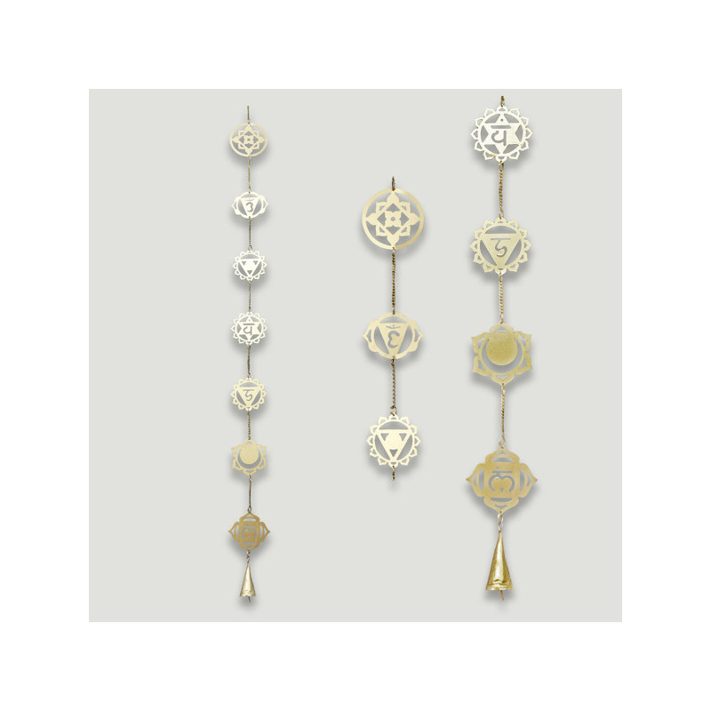Móvil metal tira Chakra dorada con campana 9x120 cm.