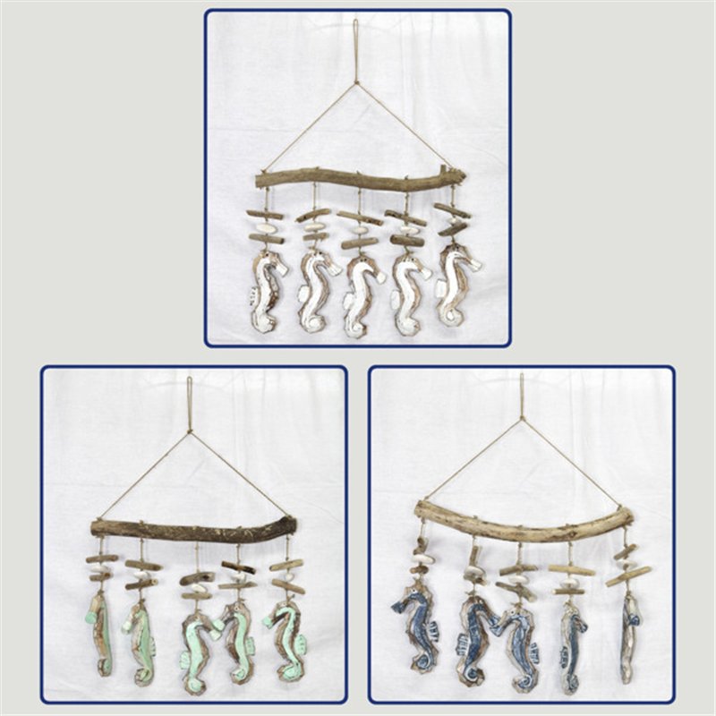 Móvil madera horizontal 5 caballitos de mar tronquitos. Colores surtidos.35x50cm