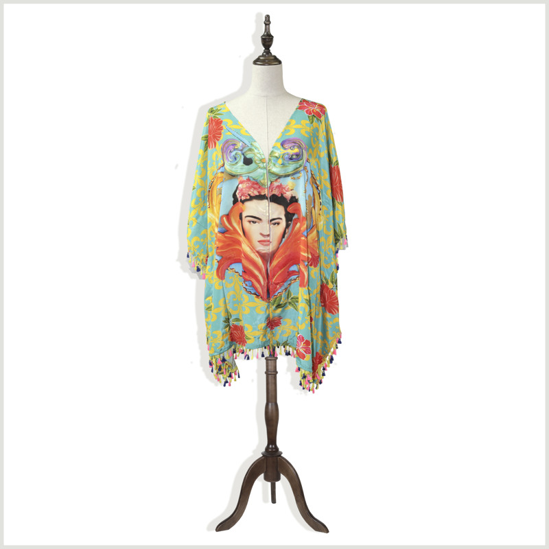 Poncho largo poliéster. Modelo Cara mujer. Talla única
