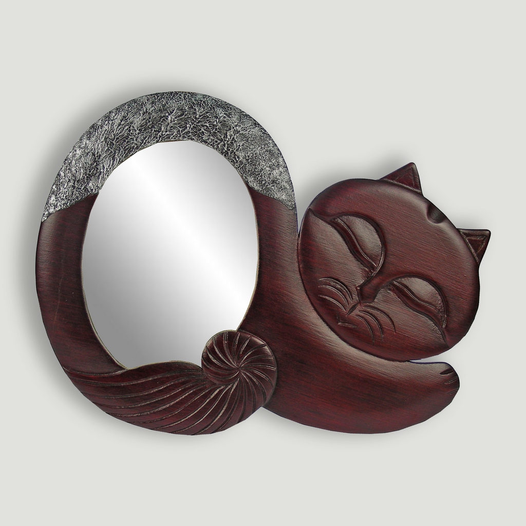 Espejo madera tallada gato1 dorado y plateado. 65x33cm