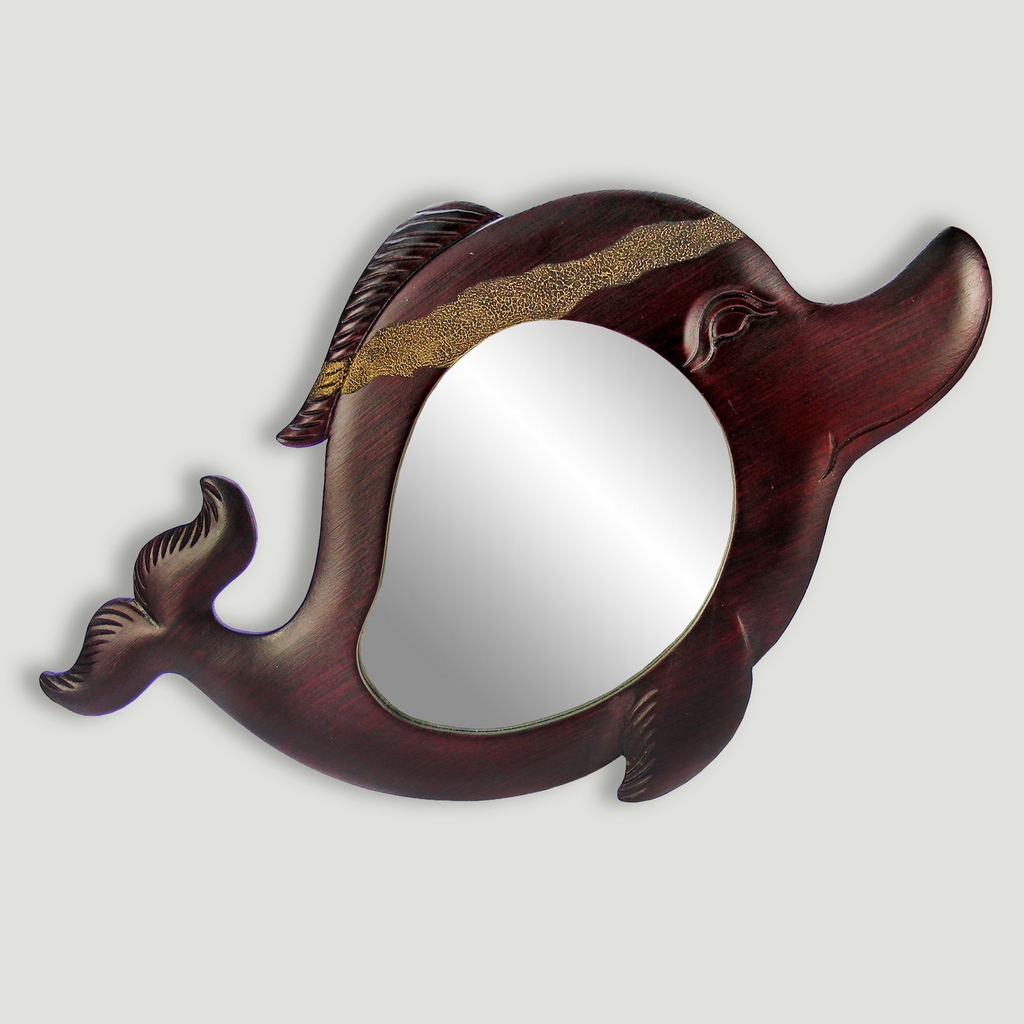 Espejo madera tallada delfin dorado y plateado. 35x58cm