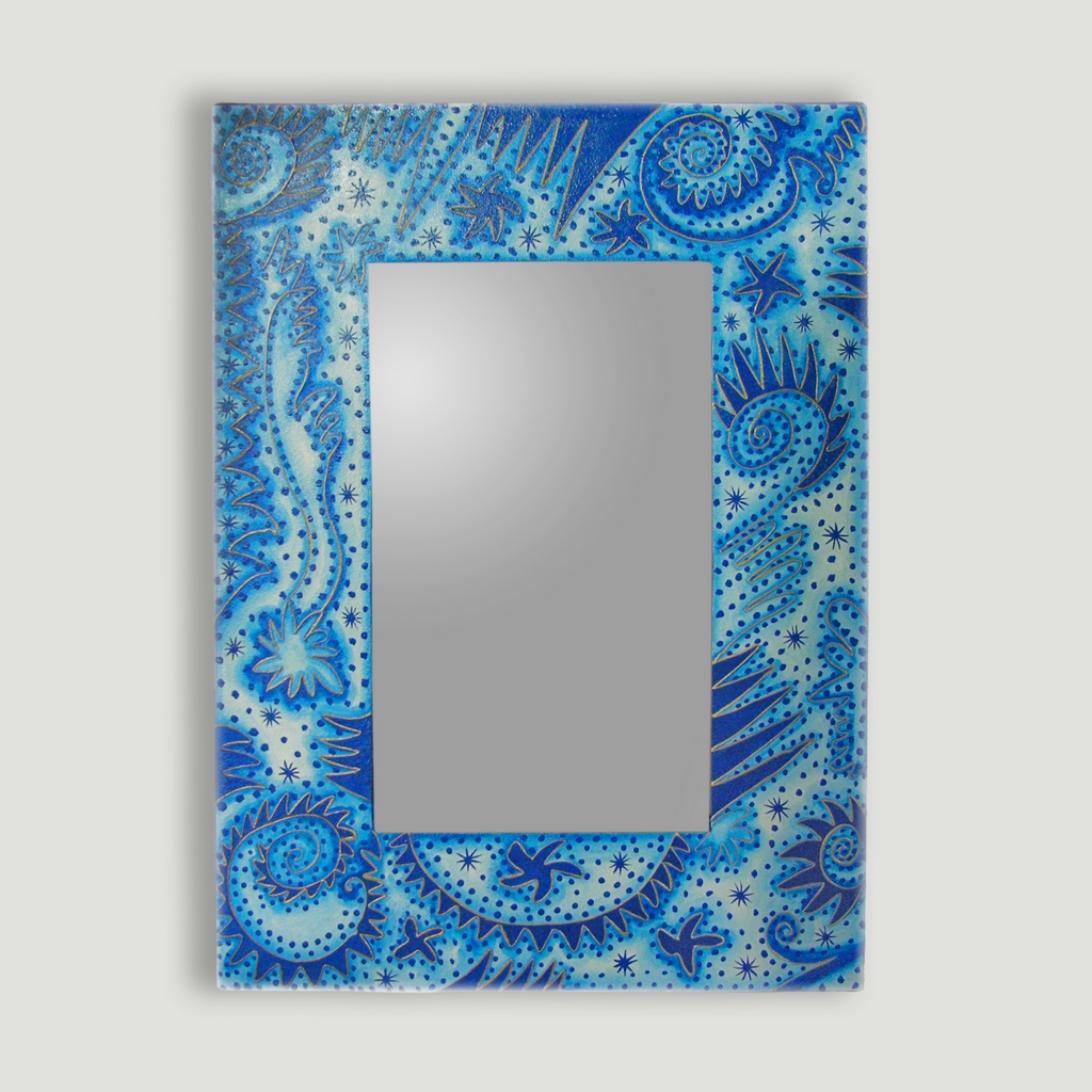 Espejo madera abstracto azul 60x80cm