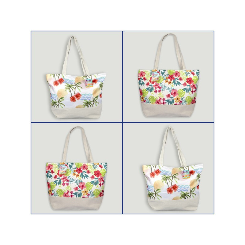 Bolso de playa. 05. Asa lisa. Modelo Flores