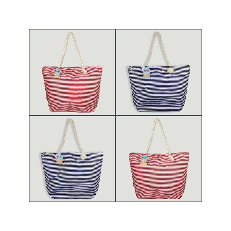 Bolso de playa. 09. Asa cuerda. Modelo Rayas rojo/azul