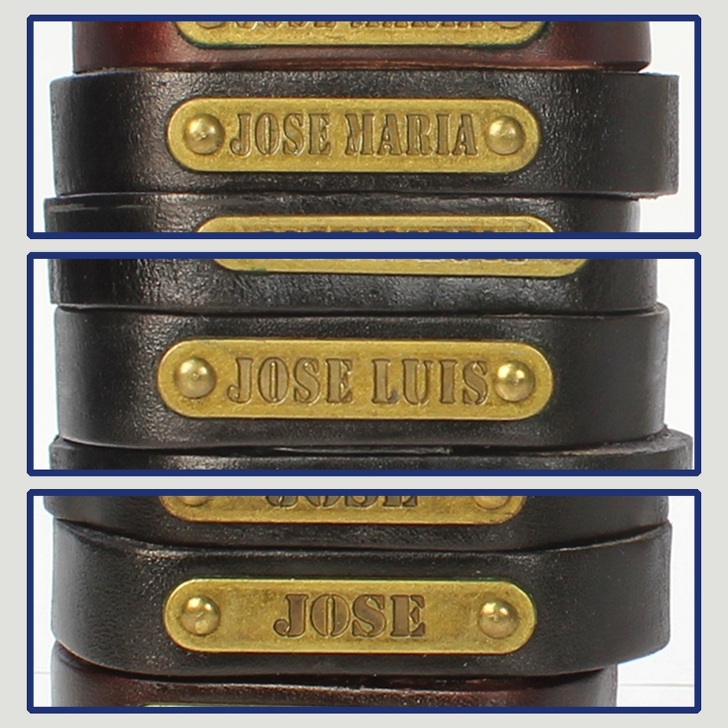 Gancho 32 – Pulsera piel con nombre. Letra J: Jose María, Jose Luis y José