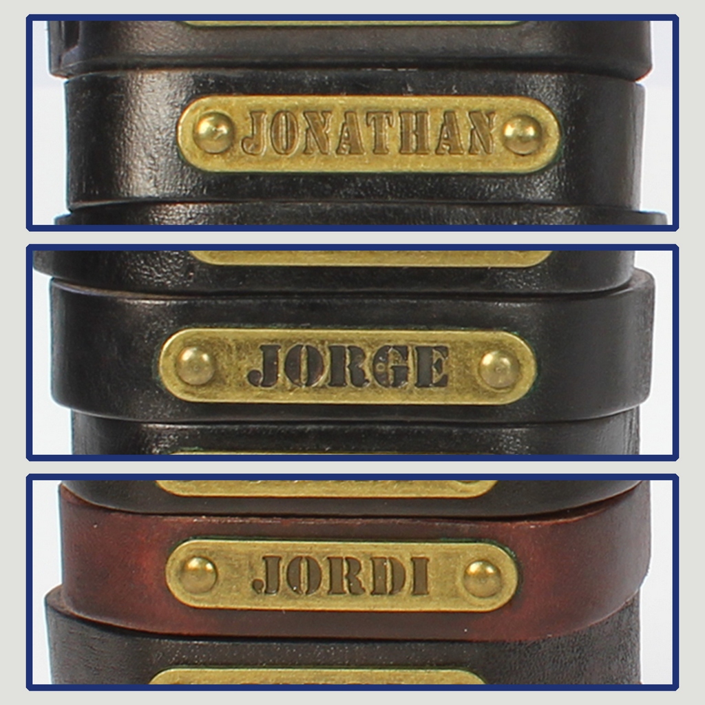 Gancho 34 – Pulsera piel con nombre. Letra J: Jonathan, Jorge y Jordi
