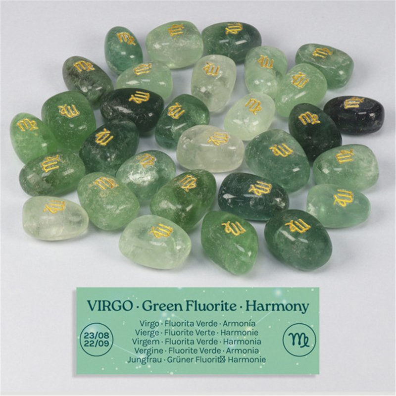 Fluorita verde. 06. Virgo. Rodado grabado