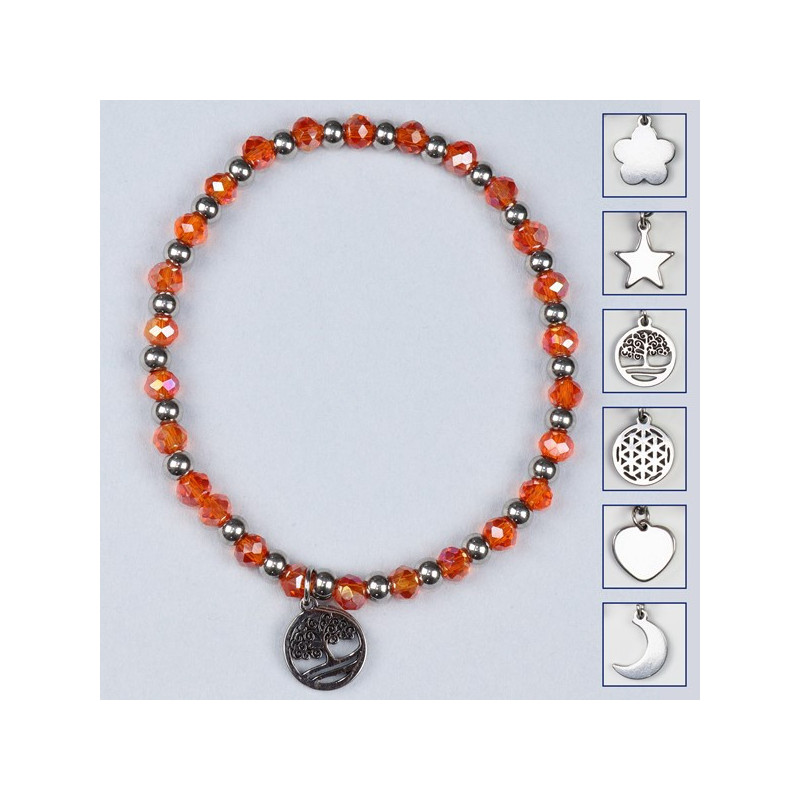 Pulsera cristal. 01. Charm acero Inox. Color Naranja
