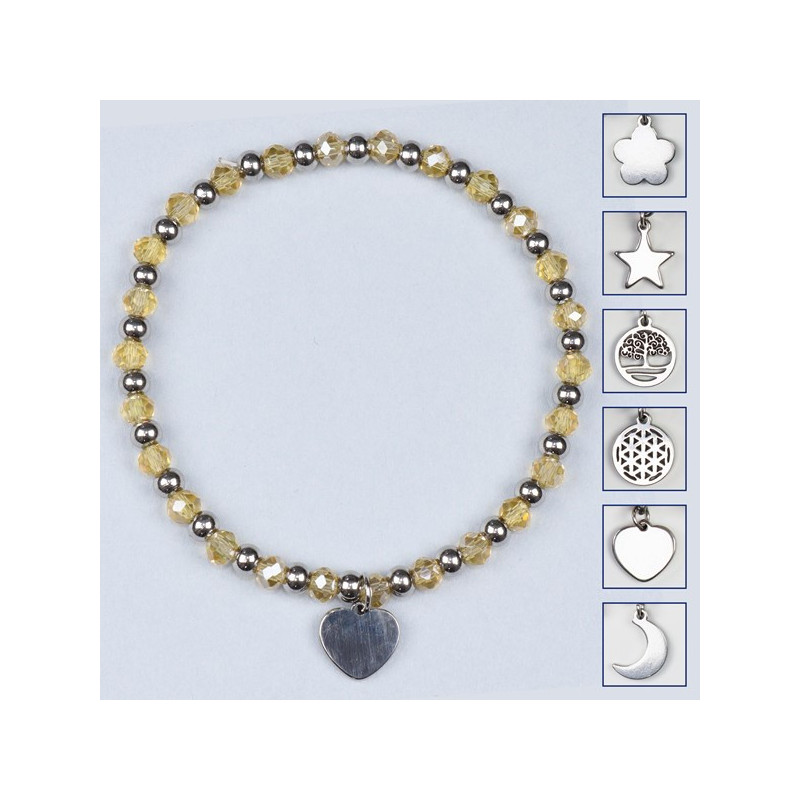 Pulsera cristal. 05. Charm acero Inox. Color Ahumado