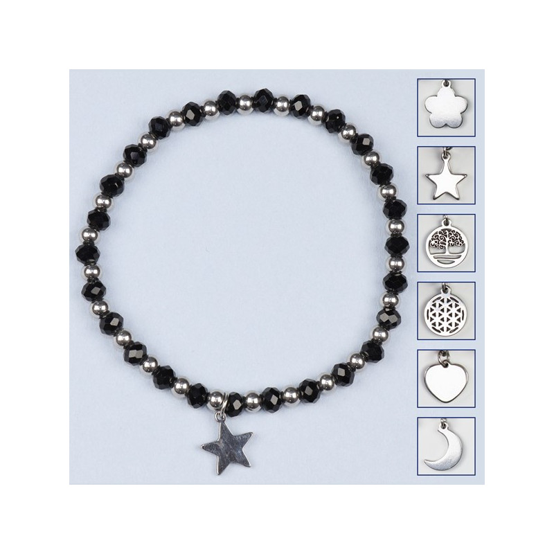 Pulsera cristal. 06. Charm acero Inox. Color Negro