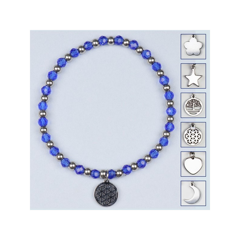 Pulsera cristal. 07. Charm acero Inox. Color Azul oscuro