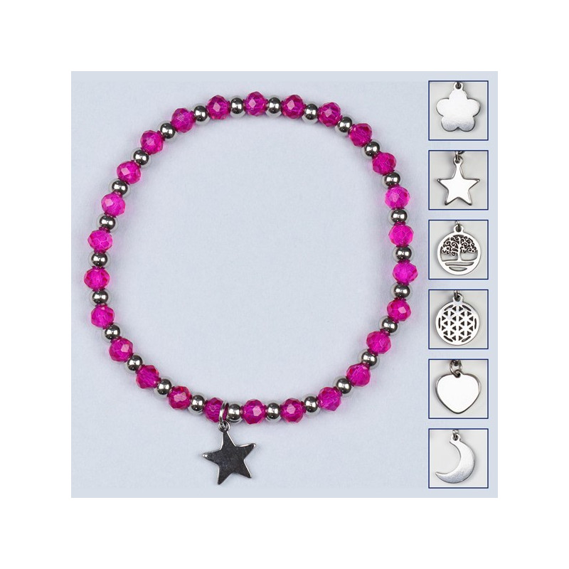 Pulsera cristal. 11. Charm acero Inox. Color Rosa oscuro