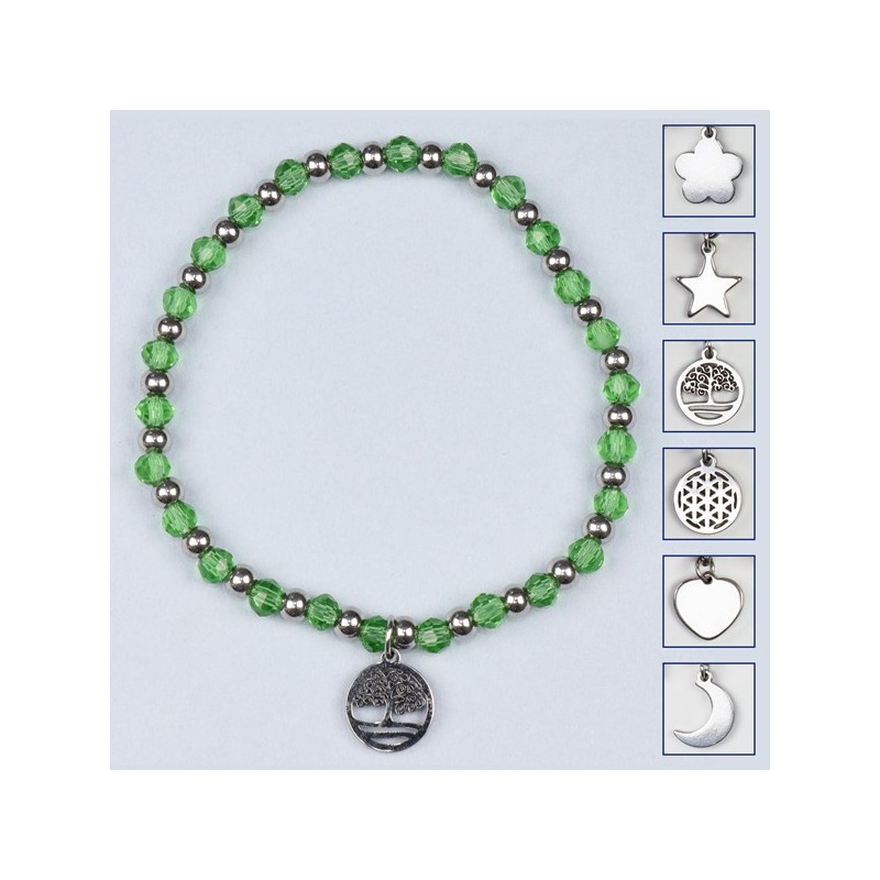 Pulsera cristal. 13. Charm acero Inox. Color Verde claro