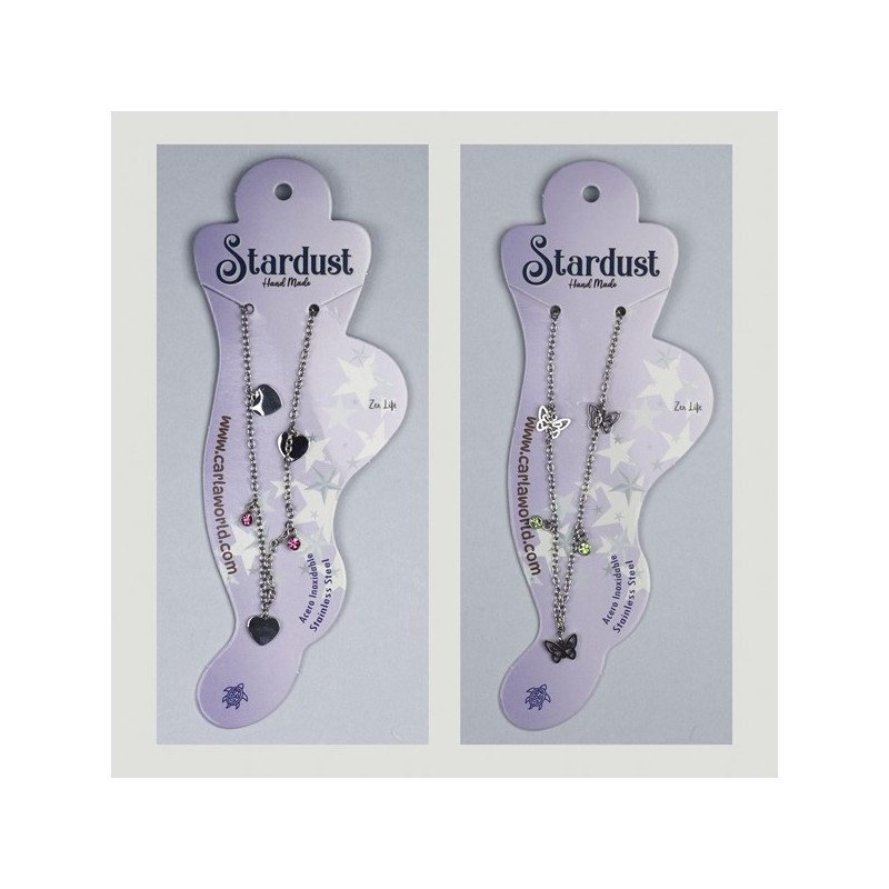 Tobillera. 76. Acero inoxidable. Modelo Corazón y mariposa