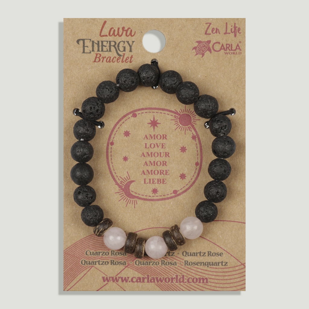 Pulsera lava poder. 02. Cuarzo Rosa. Amor