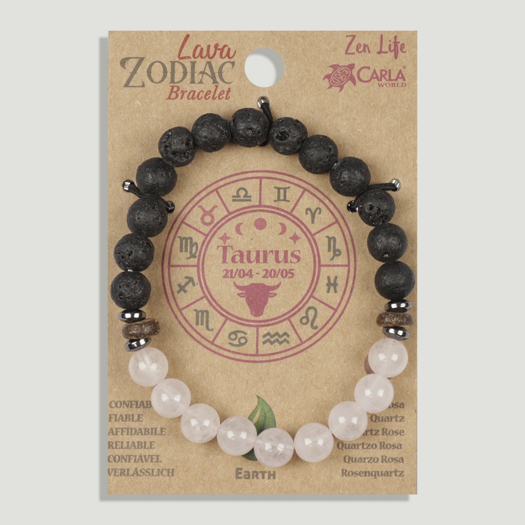 Pulsera lava Zodiaco. 14. Cuarzo Rosa. Tauro