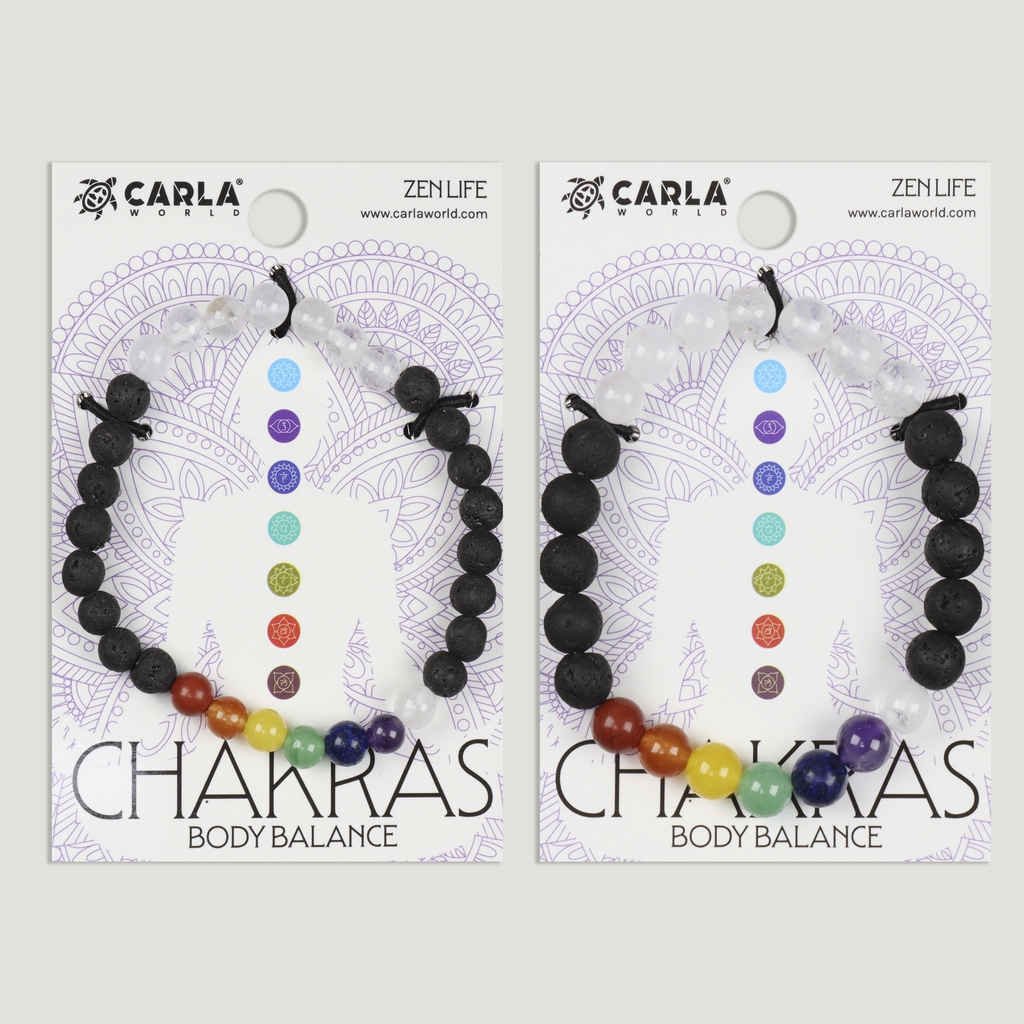 Pulsera Chakra. 59. Lava + 7 chakras + Cuarzo cristal