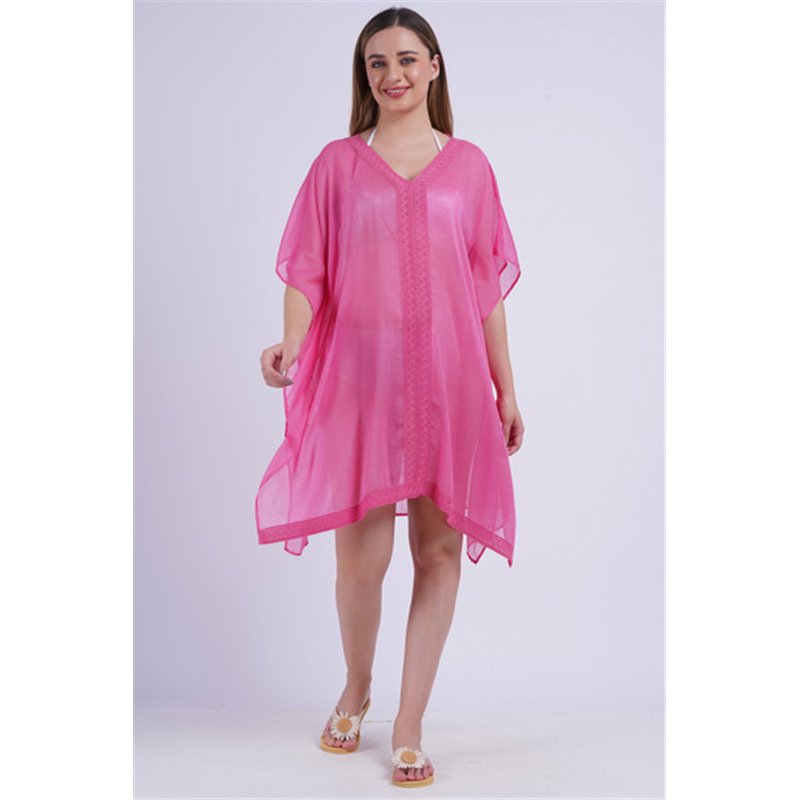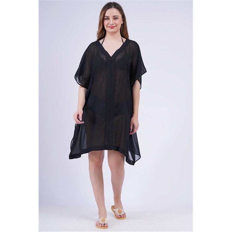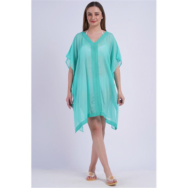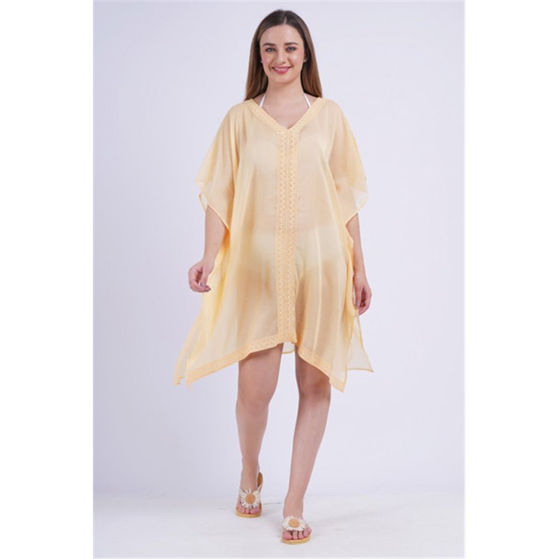 Style : Poncho en coton uni. Broderie spéciale au centre et sur l'ourlet avant.