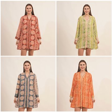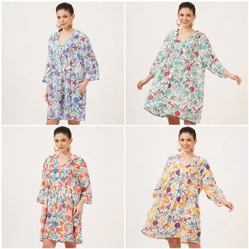 Style : Tunique en coton avec 3 imprimés. Boutons sur le devant et bouton sur la manche trois-quarts.