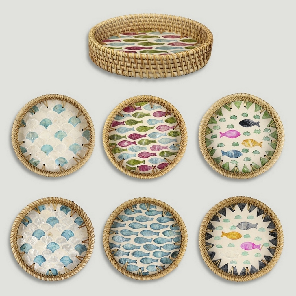Matériau : Bambou + rotin avec nacre.