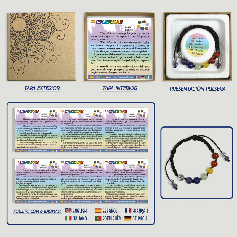 Chakra. Bracelet en macramé. 8mm. Boîte à cadeau