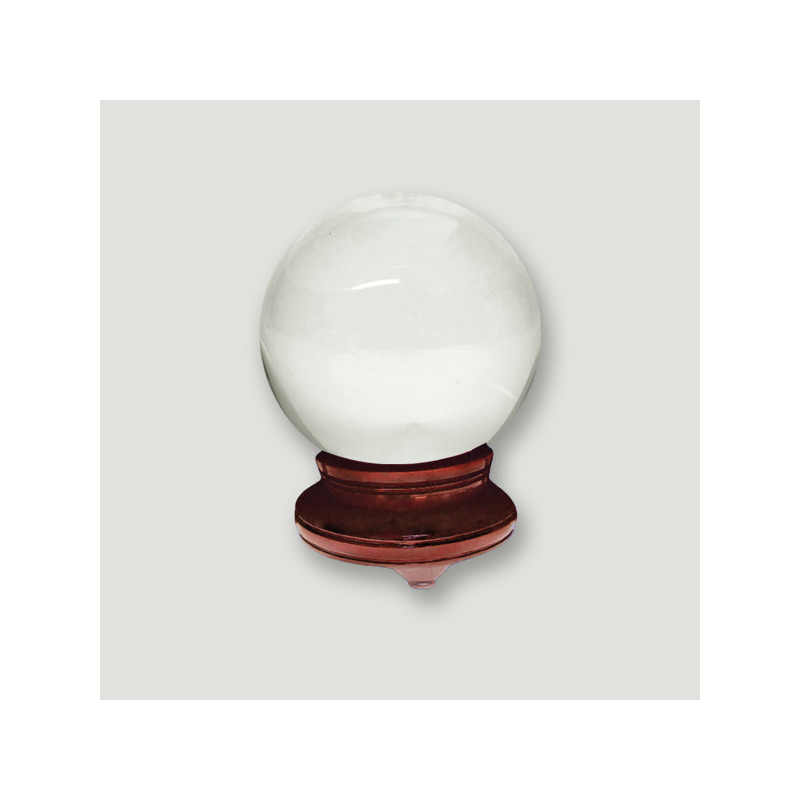 Boule en verre reconstitué lisse avec base en bois. 20cm.