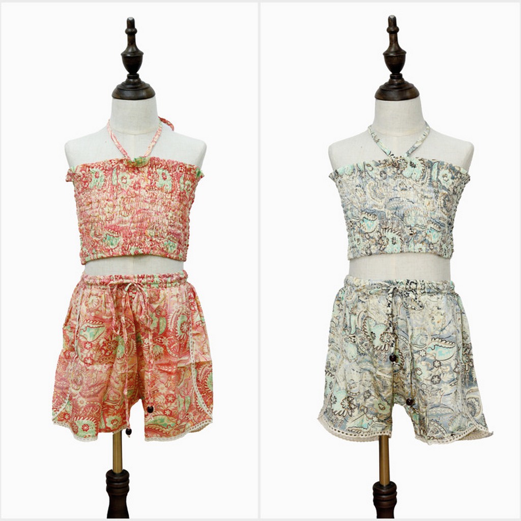 Style: Ensemble: Top sans manches attaché au cou et short