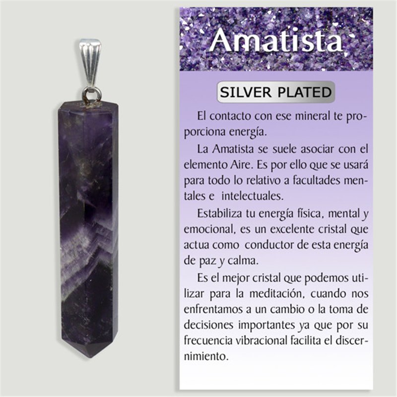 Minéral : AMÉTHYSTE. Pendentif plaqué argent. Pointe.
