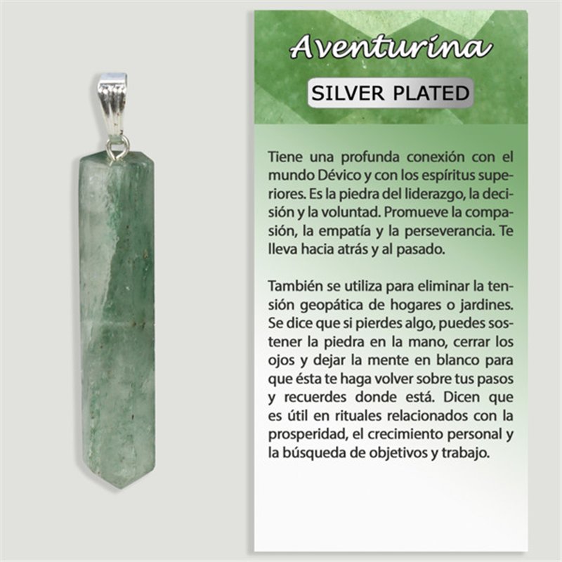 Minéral : AVENTURINE VERTE. Pendentif plaqué argent. Pointe.