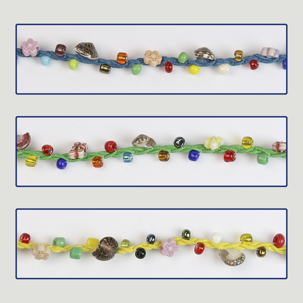 Bracelet en cordon. 90. Coquillages et coquilles. Assortis
