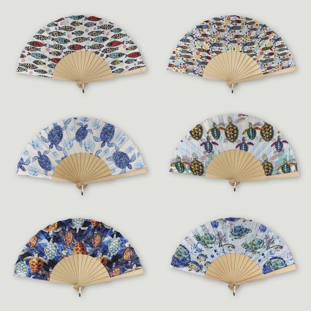 Éventail en bois. 45. Modèle Tortues et poissons. Surtidos