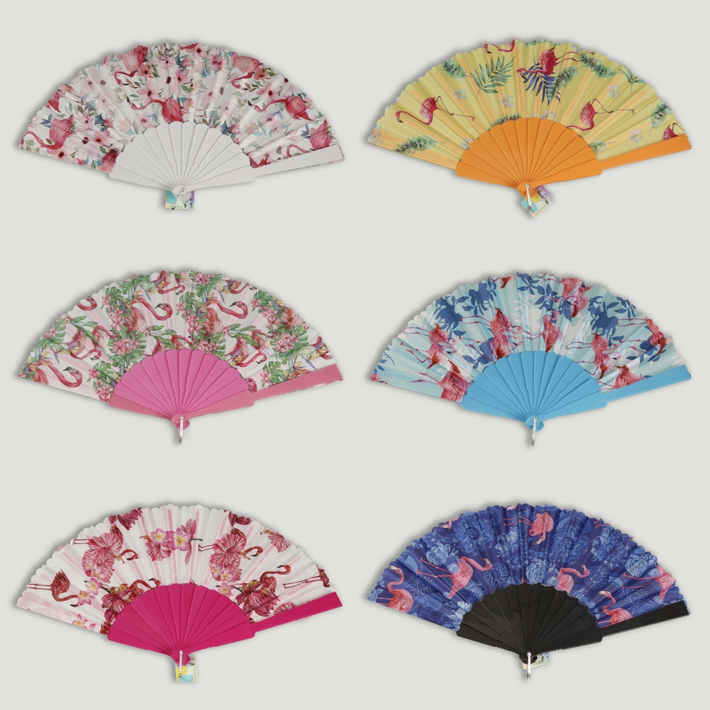 Éventail en plastique. 61. Modèle Flamant rose. Surtidos