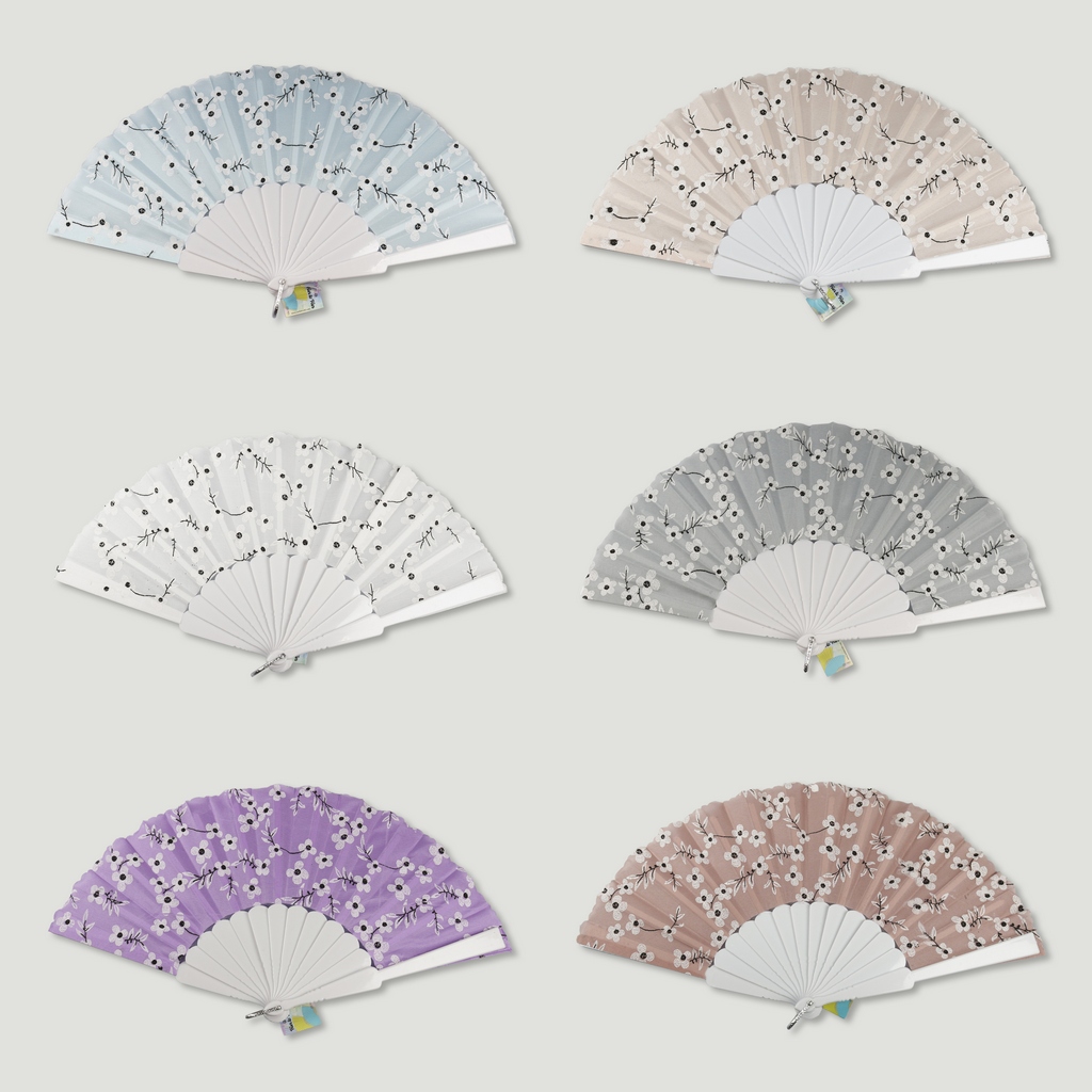 Éventail en plastique. 79. Modèle Fleurs blanches. Surtidos