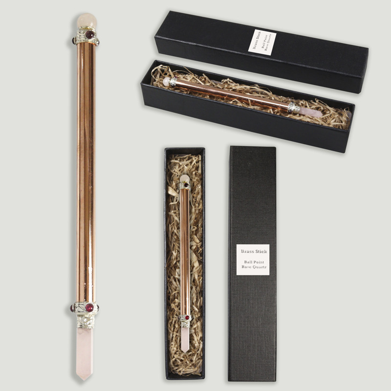 Baguette en cuivre. Boule et pointe. Quartz rose.