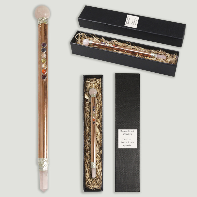 Baguette de chakra. Boule et pointe. Quartz rose.