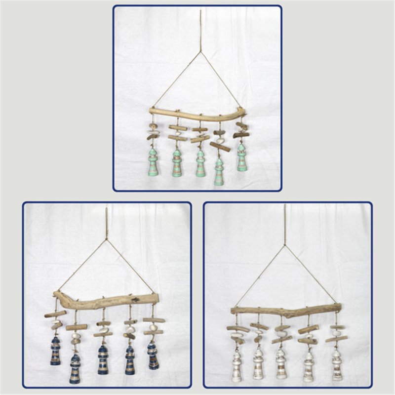 Mobile horizontal en bois avec 5 phares tronc. Couleurs assorties.35x60cm