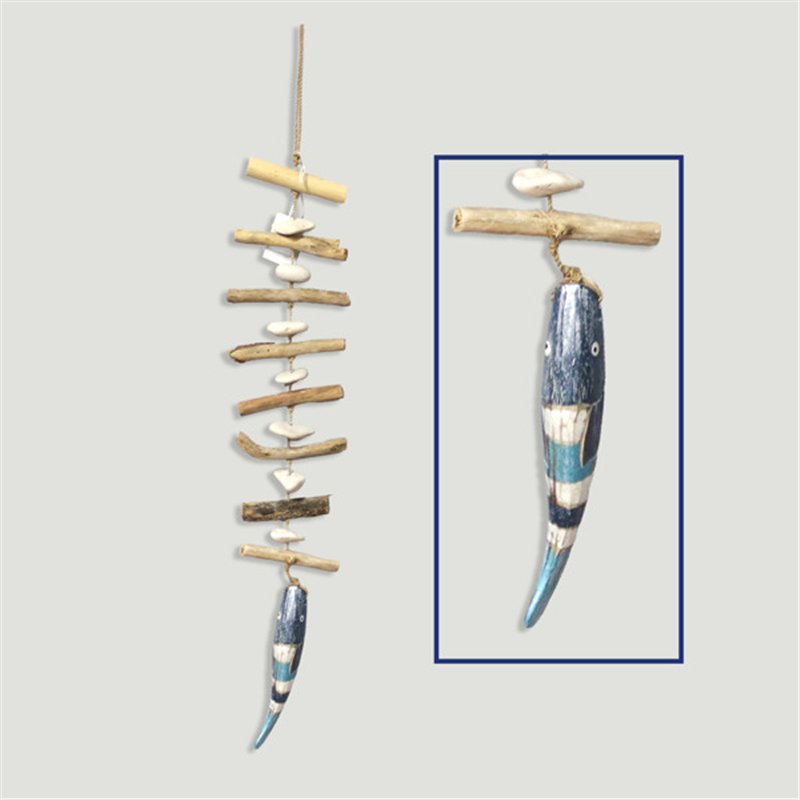 Mobile en bois 1 sardine et troncs. 60-70 cm.